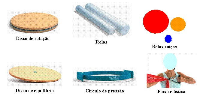 colchonete, rolo de espuma, magic circle e outros, conforme Figura 10. Figura 10 - Equipamentos auxiliares (Becker, 2003).