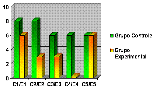 Os resultados do Reteste do Grupo Controle e do Experimental apresentaram uma diferença importantíssima, ilustrada no Gráfico 6, o comparativo dos grupos facilitando a interpretação. Gráfico 6 - Comparação do Reteste no Grupo Controle e no Grupo Experimental.